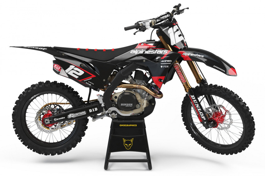 Full motocross graphics kit for Honda by OMXGraphics includes printed graphics for – Tank Shrouds / Fuel Tank, Side Number Plates, Airbox, Rear Fender, Front Fender, Front Number Plate, Fork Guards, and Swingarms (Sometimes kit contents may vary depending on your bike model).