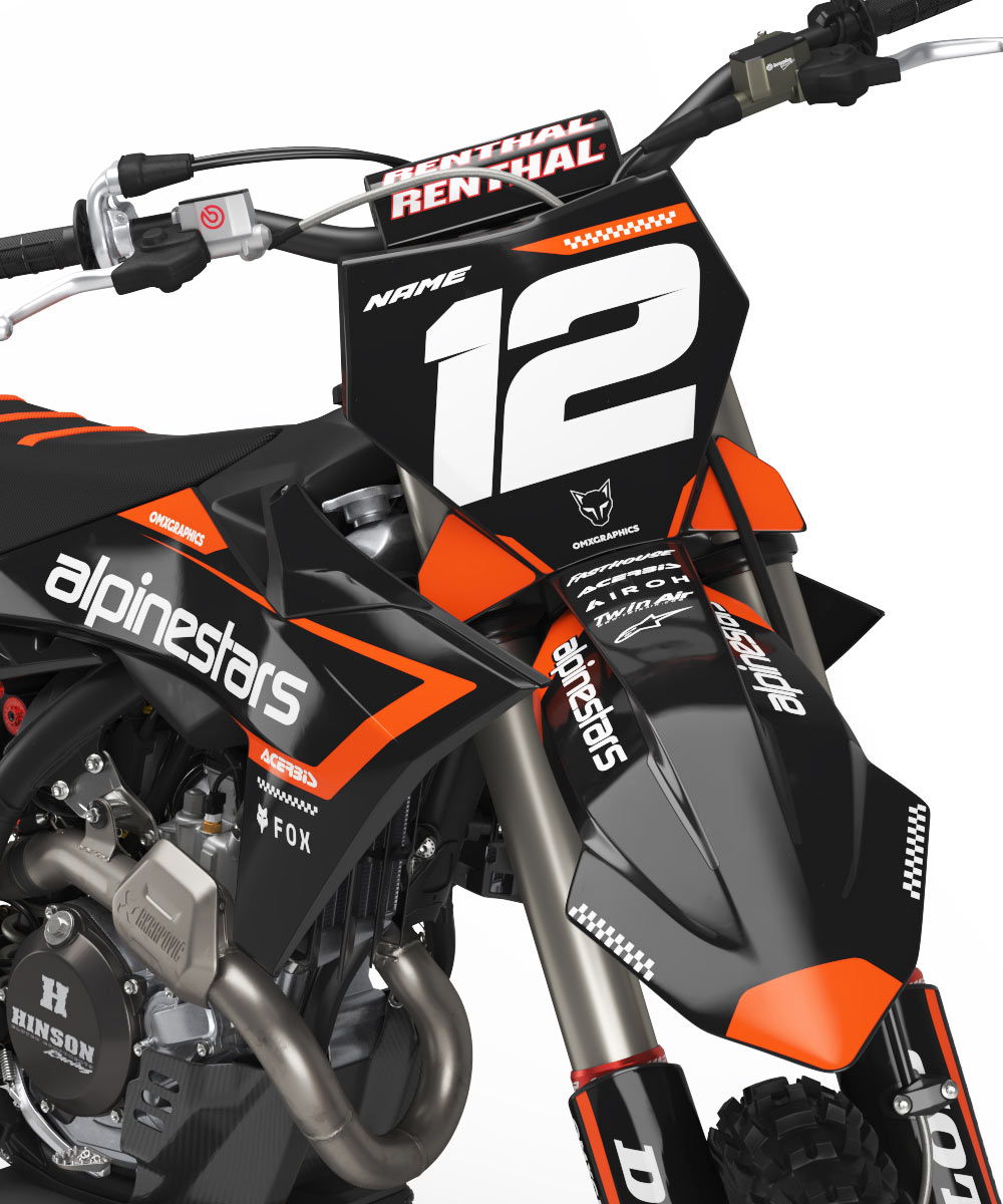 Here at OMX Graphics, we’re riders just the same as you are, and we perfectly know how important it is to have a bike that looks the same good as it rides. That’s why we’ve created a wide range of pre-designed KTM mx graphics kits for you to choose from. Whether you’re after a fresh look or something that screams your style and personality, we’ve got you covered with graphics that can be customized with your name, number, logos and colors just the way you want it.