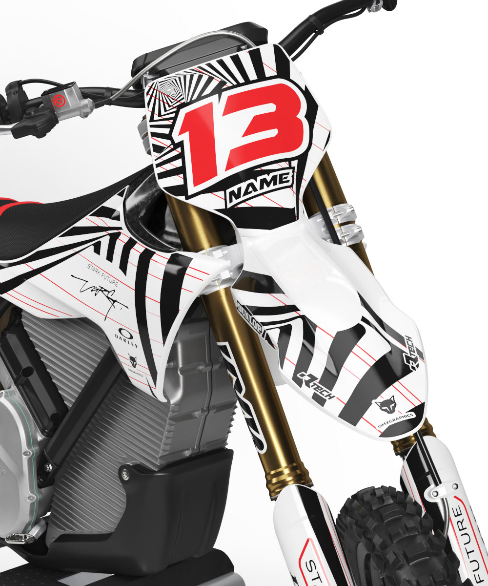 Here at OMX Graphics, we’re riders just the same as you are, and we perfectly know how important it is to have a bike that looks the same good as it rides. That’s why we’ve created a wide range of pre-designed Stark Varg mx graphics kits for you to choose from. Whether you’re after a fresh look or something that screams your style and personality, we’ve got you covered with graphics that can be customized with your name, number, logos and colors just the way you want it.