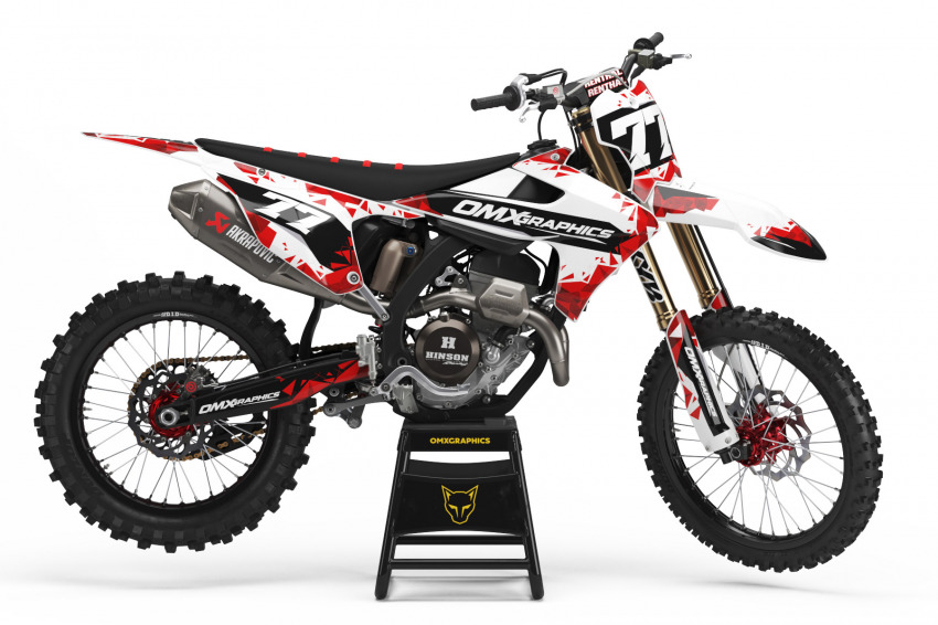 Here at OMX Graphics, we’re riders just like you – we know exactly how important it is to ride a bike that looks as good as it performs. That’s why we’ve created a wide range of pre-designed Triumph MX graphics kits for you to choose from. Whether you’re after a bold new look or something that captures your own style and attitude, we’ve got you covered. All graphics can be customized with your name, number, logos, and colors exactly the way you want them.